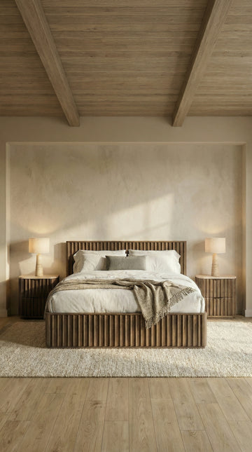 מיטה זוגית עם מגירות מעץ מלא מקולקציית בטון