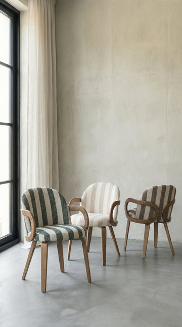 כיסא מרופד בד פסים חום בעל משענת גבוהה