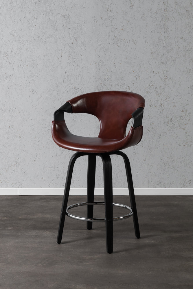 כיסא בר מרופד דמוי עור בעל ידיות עבות מעוגלות