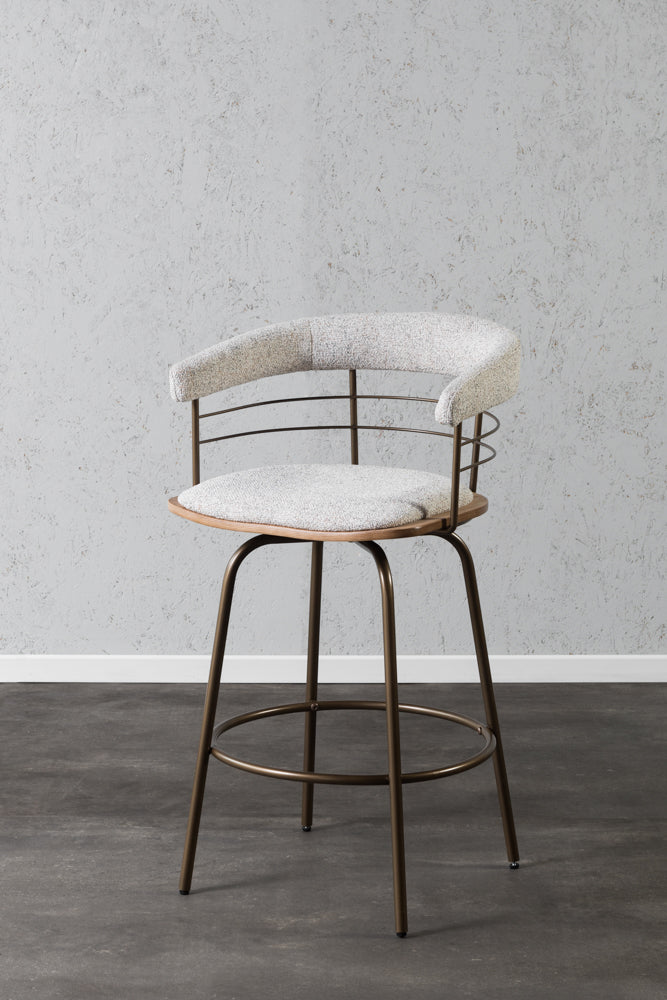 כיסא בר מרופד משענת מעוגלת בשילוב מתכת בד בהיר
