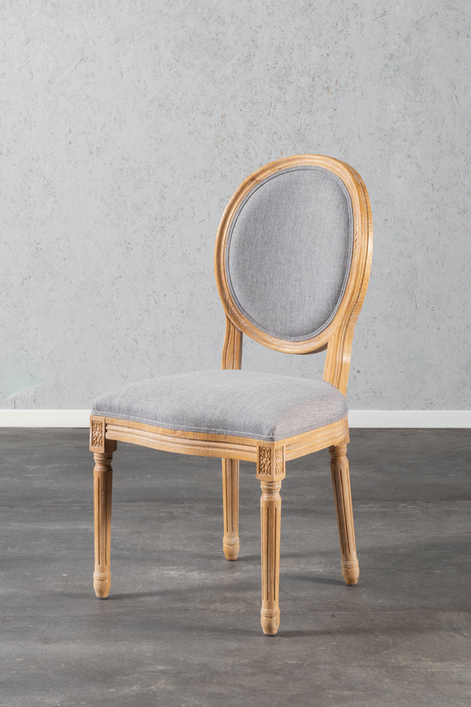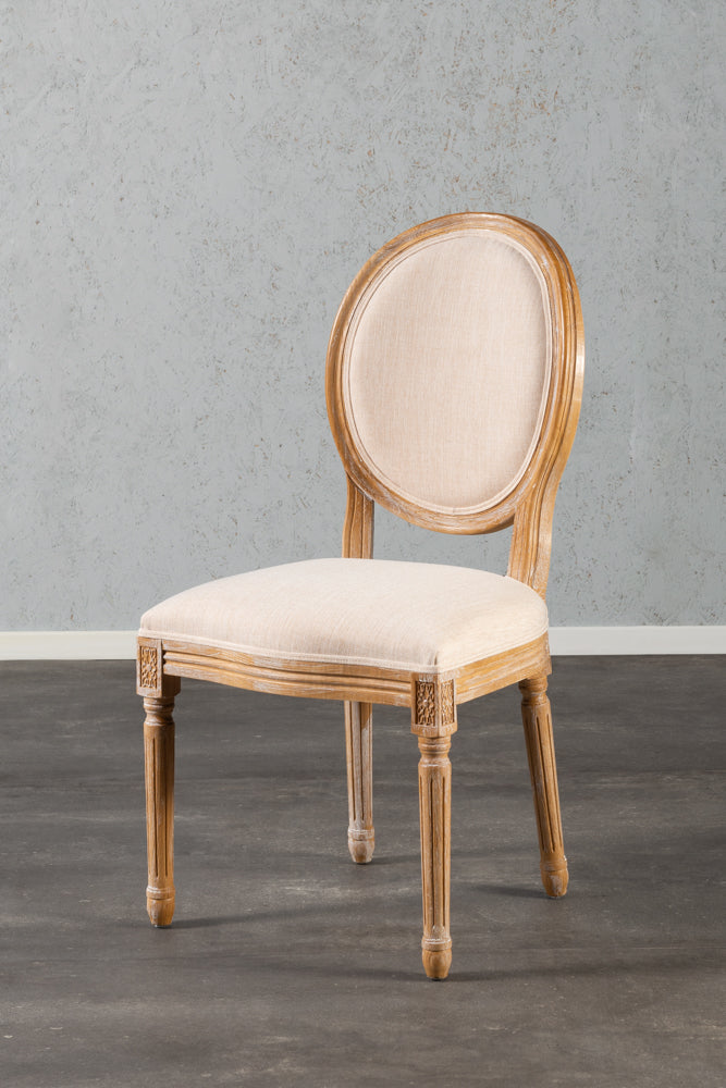 כיסא מעץ מלא משענת עגולה מרופדת - בד בהיר