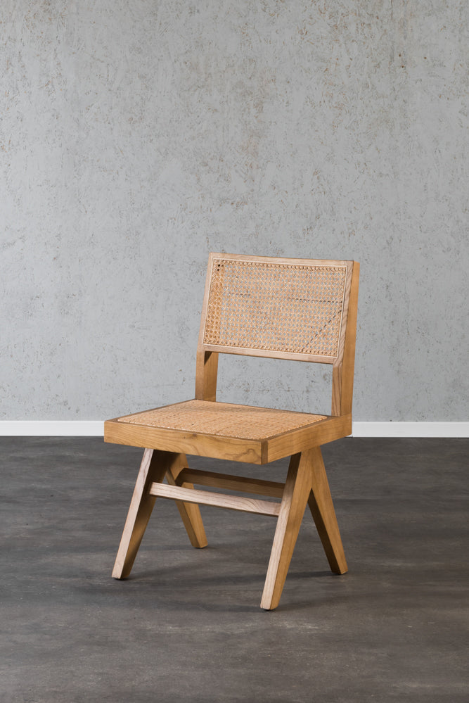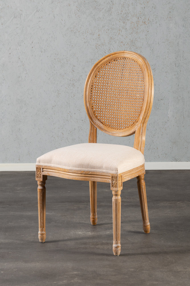 כיסא מעץ מלא משענת עגולה ראטן- בד בז'