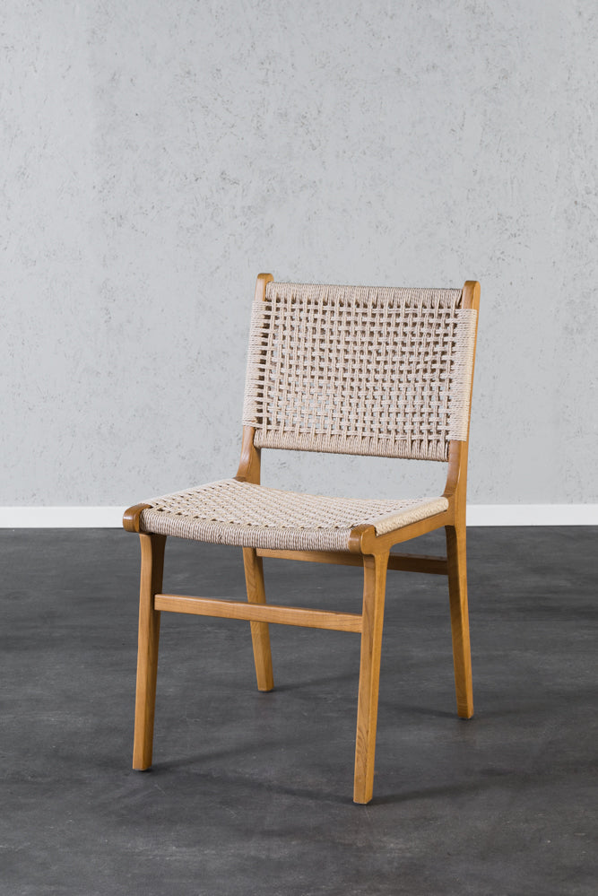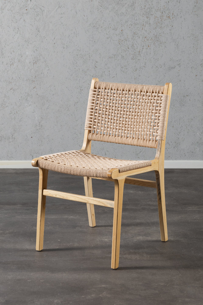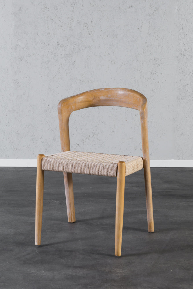 כיסא ירח מעץ מלא מושב חבל בשילוב עץ - גוון חום מולבן