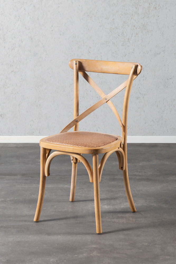 כיסא גב איקס מעץ מלא - גוון חום מולבן