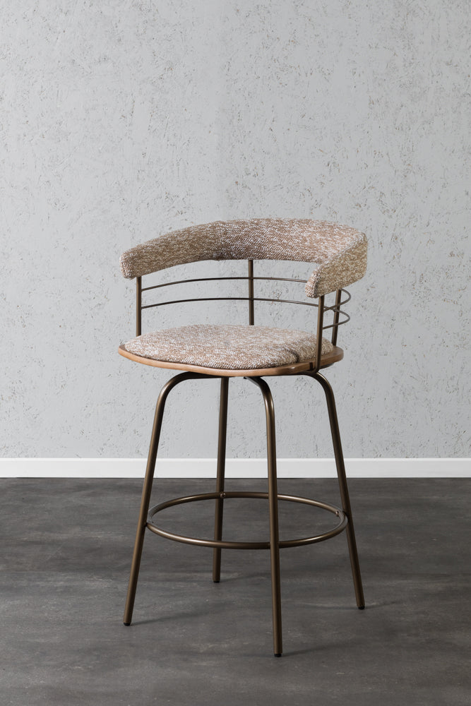 כיסא בר מרופד משענת מעוגלת בשילוב מתכת בד חום