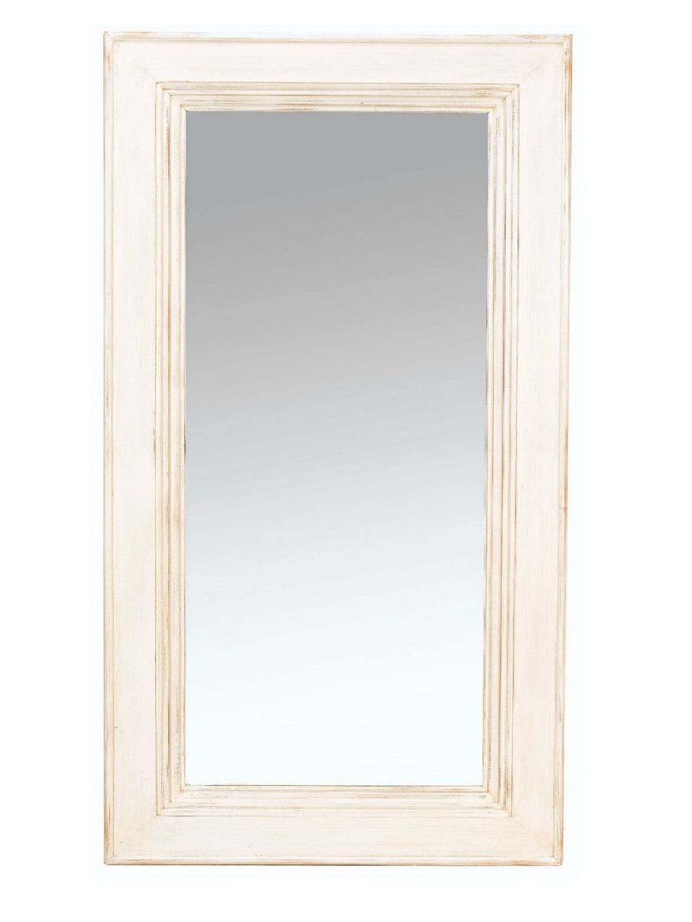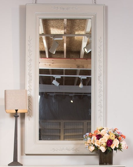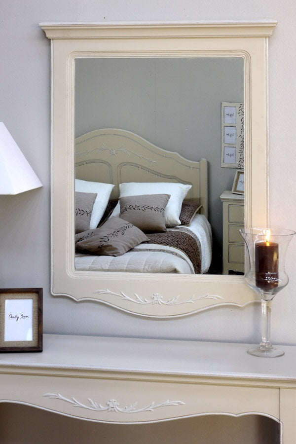 מראה גדולה לתלייה בעלת מסררת עץ מלא מקולקציית שאטו בהיר (לבן עתיק)