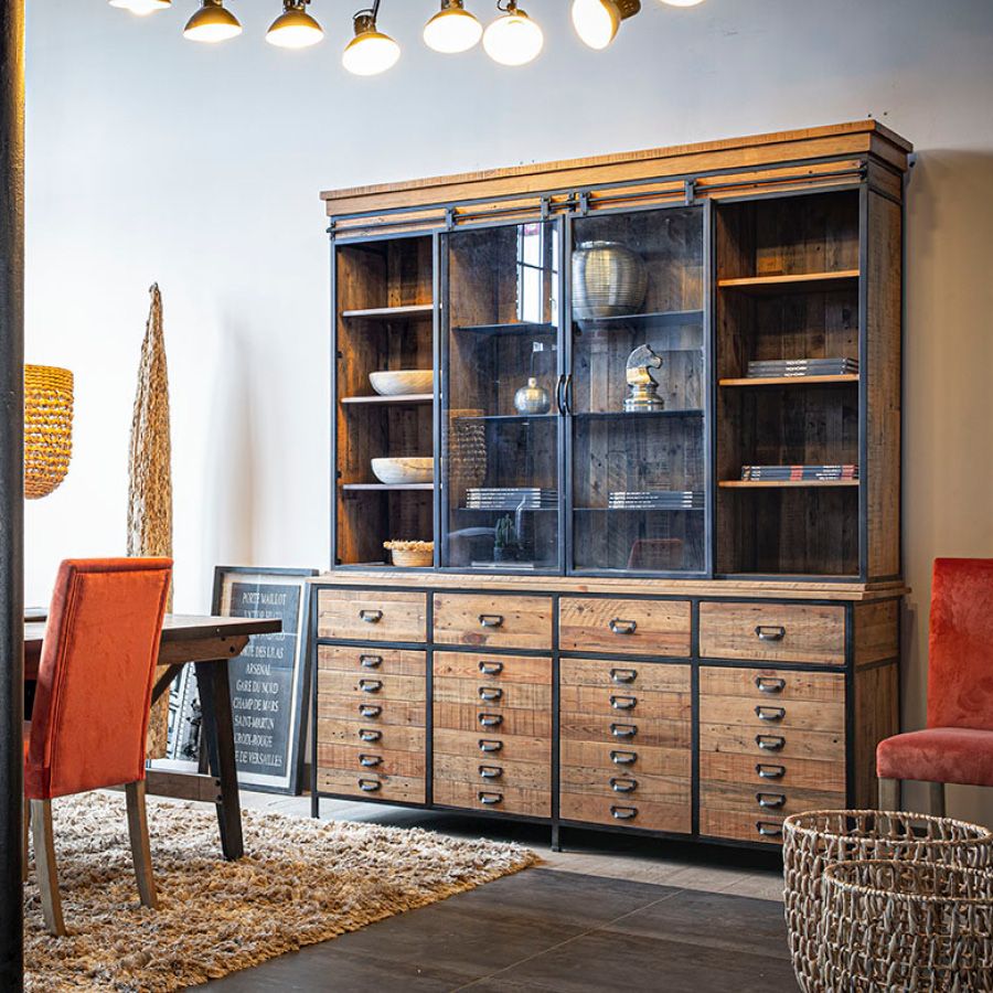 ויטרינה 4 דלתות מעץ מלא קולקצייה תעשייתית