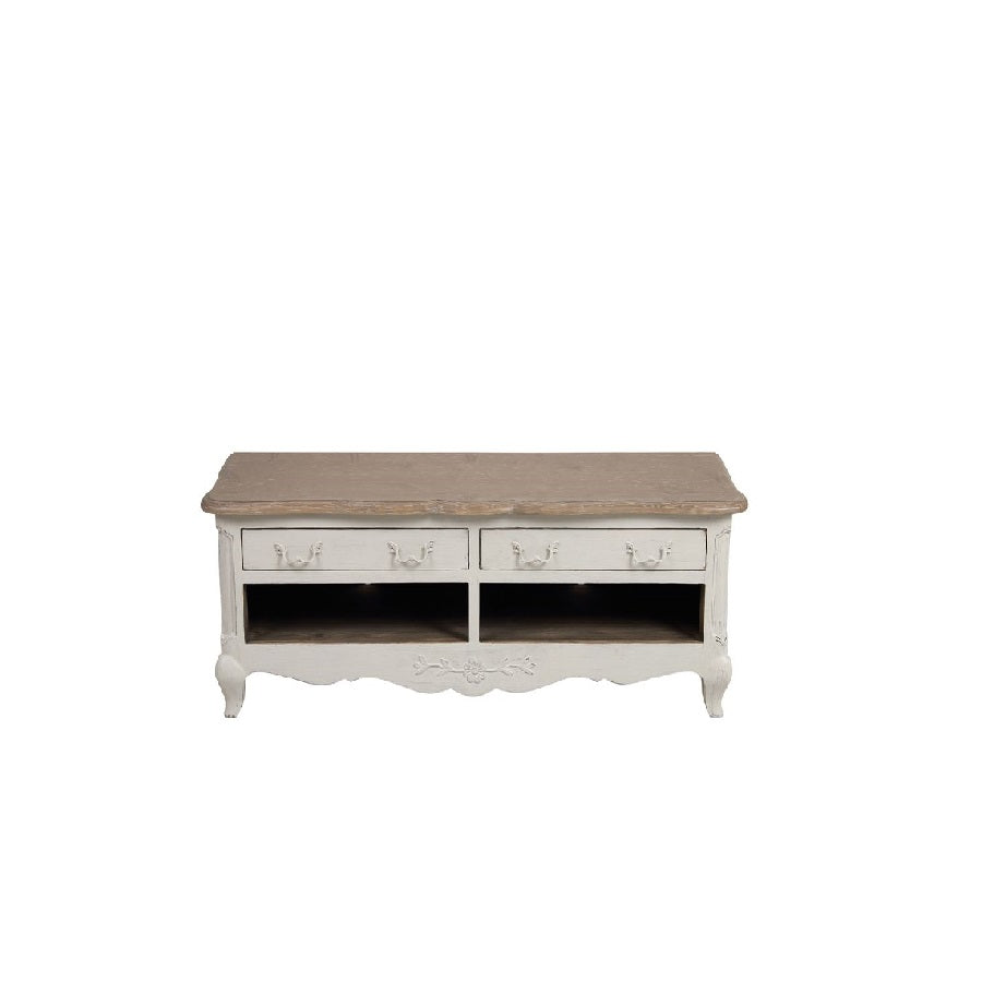 שידת טלוויזיה, מזנון לטלויזיה מעץ מלא מקולקציית שאטו בהיר (לבן עתיק)