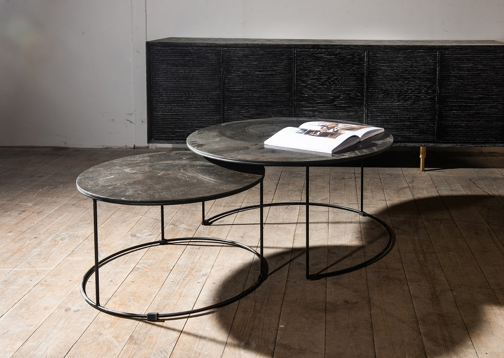 זוג שולחנות עגולים שיש מקולקציית נגרים