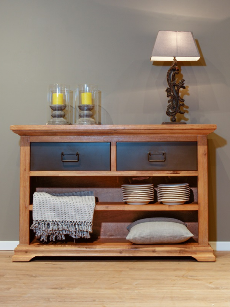 מזנון גבוה פתוח מעץ מלא בסגנון ריהוט כפרי מקולקציית לין