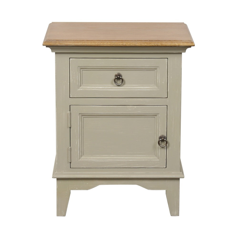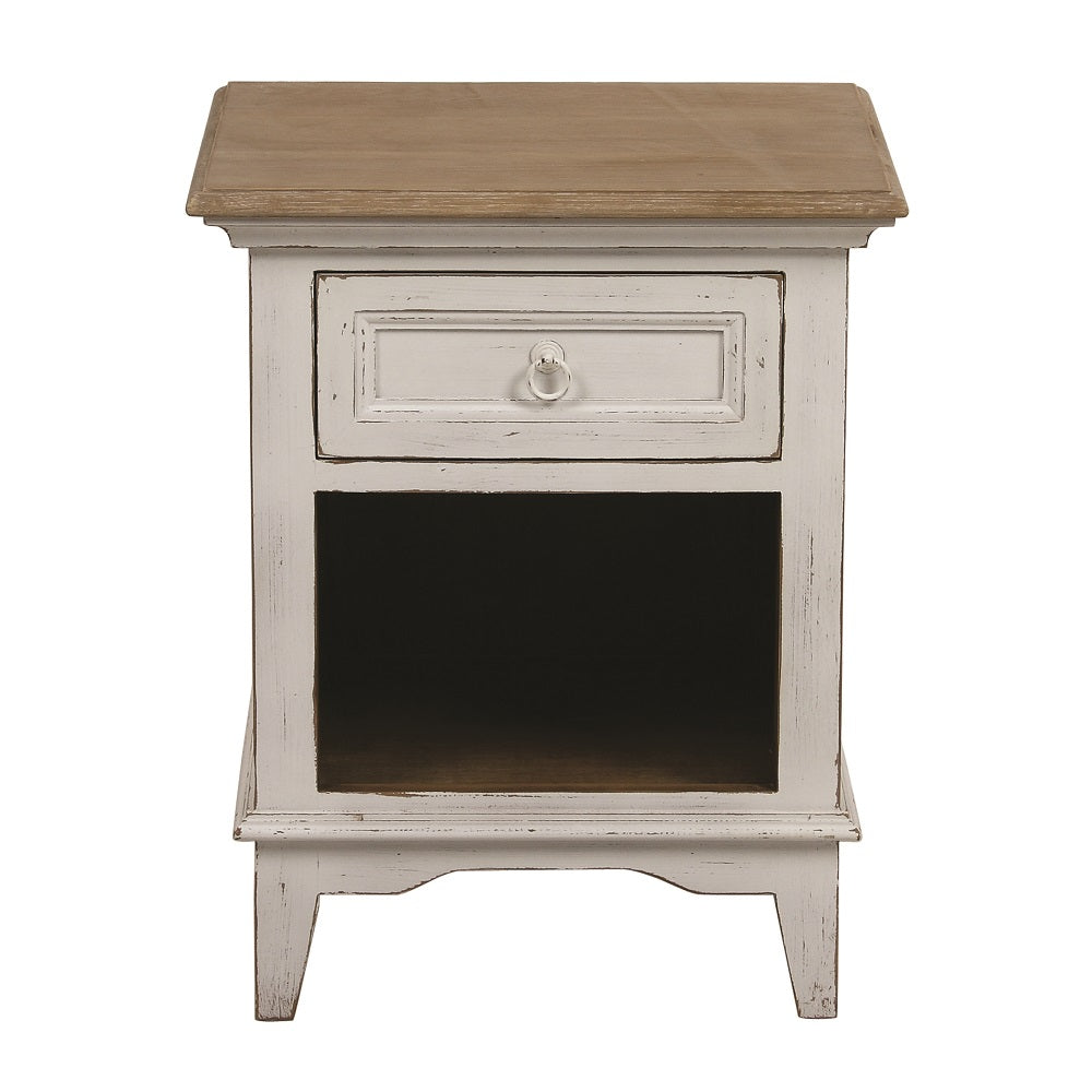 שידת לילה, שידת צד מעץ בסגנון ריהוט כפרי מקולקציית רומנס בגוון בז’ בהיר (גוון לוברון)