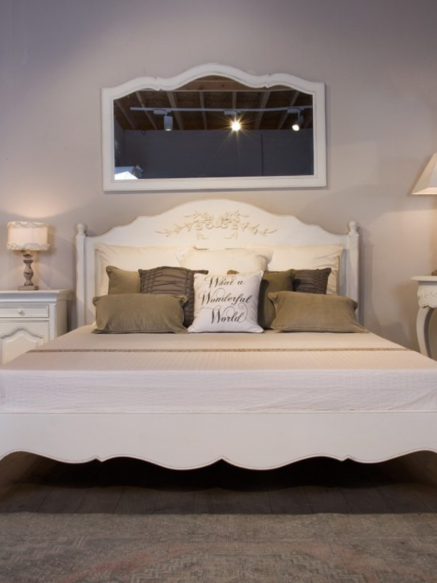 מראה גדולה לתלייה בעלת מסררת עץ מלא מקולקציית שאטו בהיר (לבן עתיק)