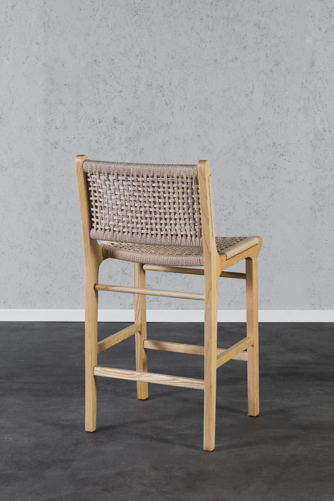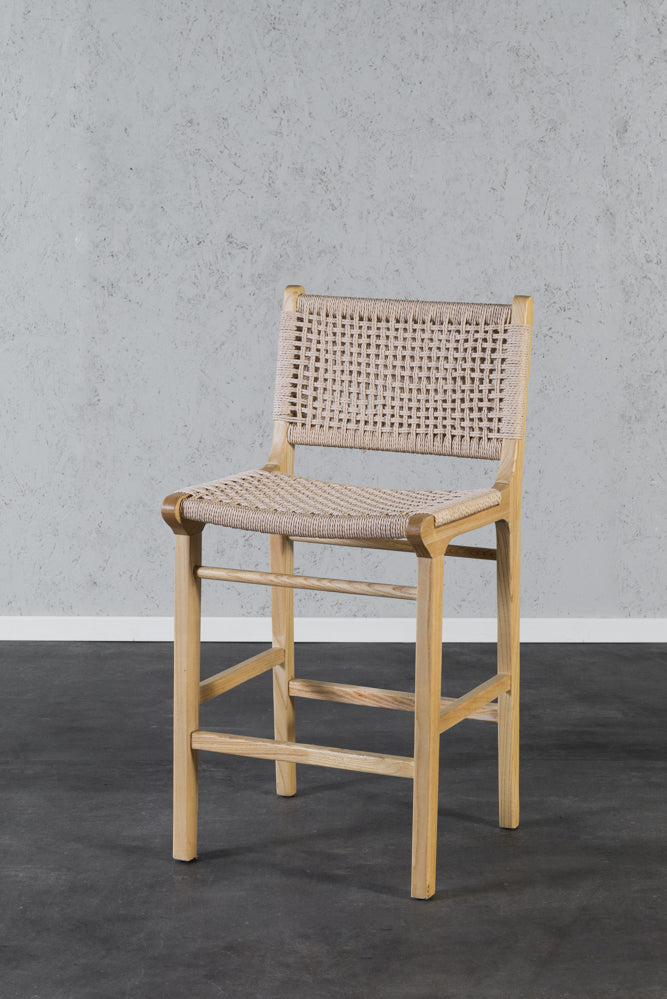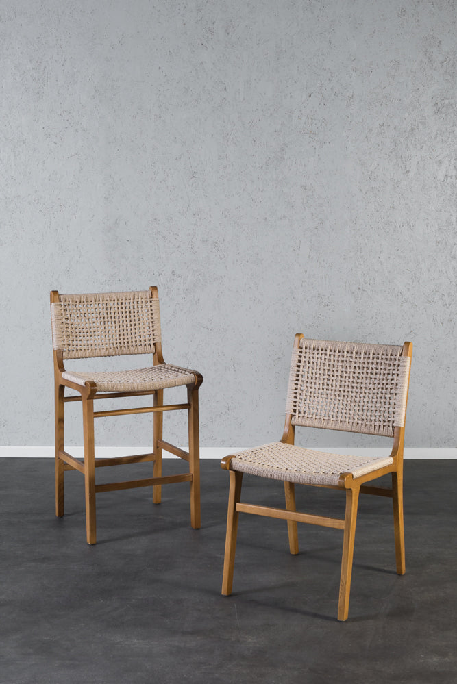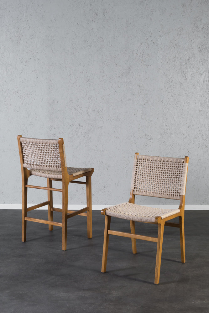 כיסא בר חבלים מעץ מלא גוון עץ נטורל - 8 יחידות אחרונות!