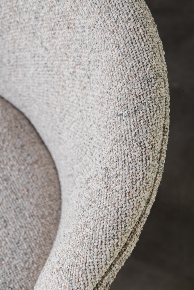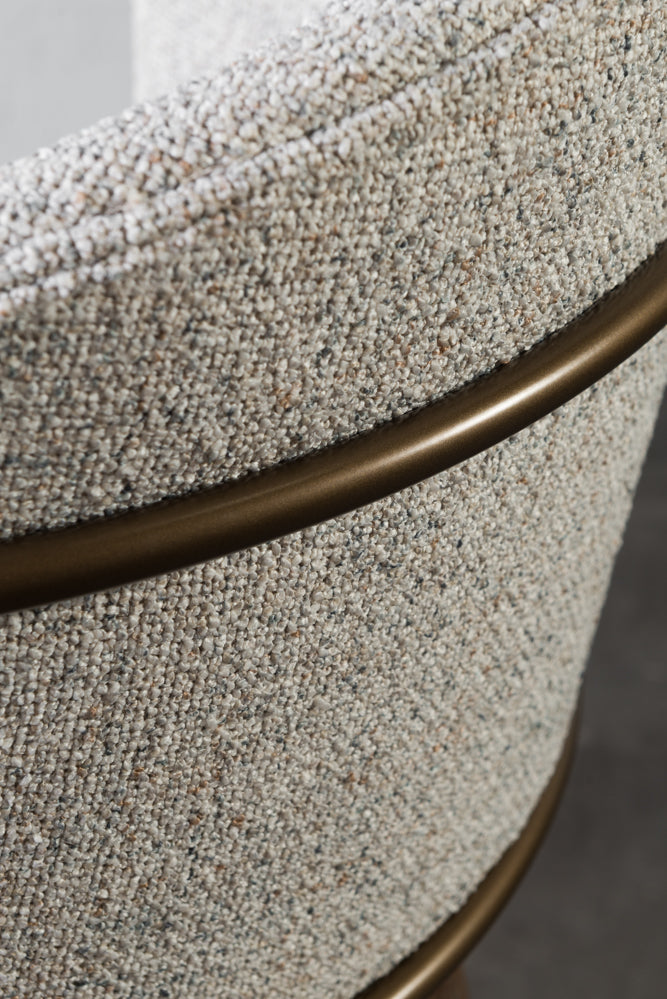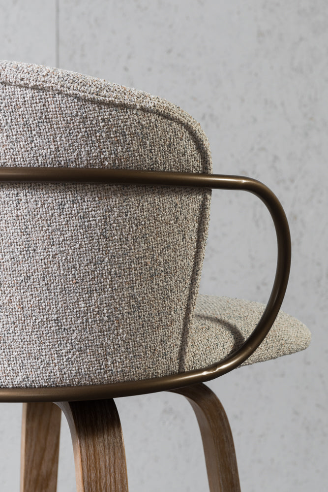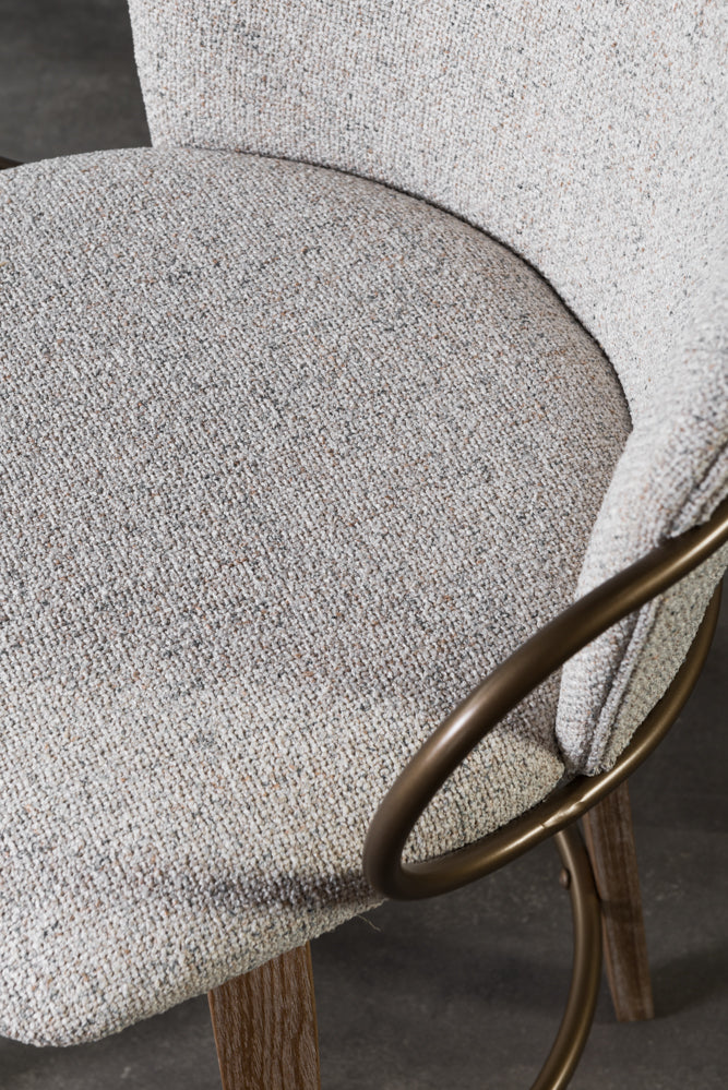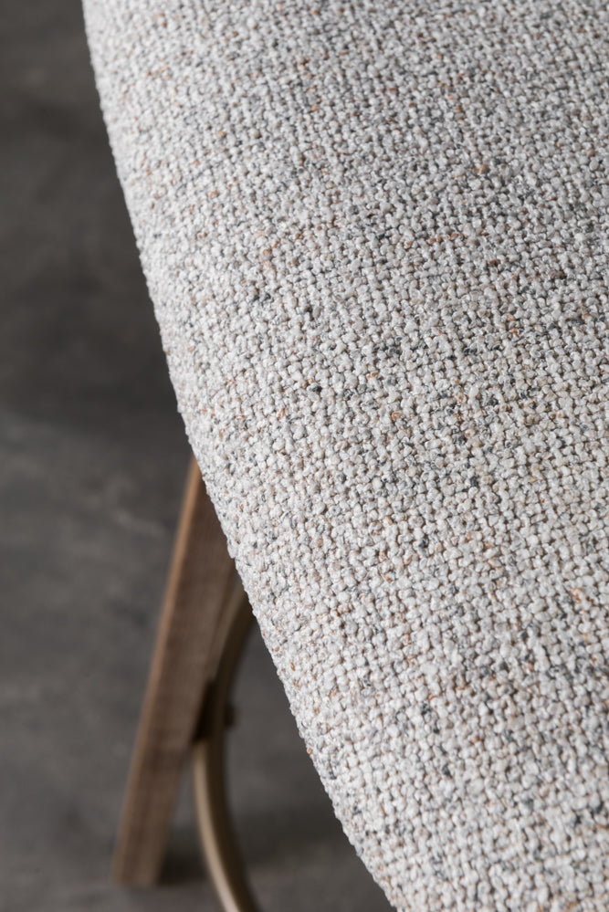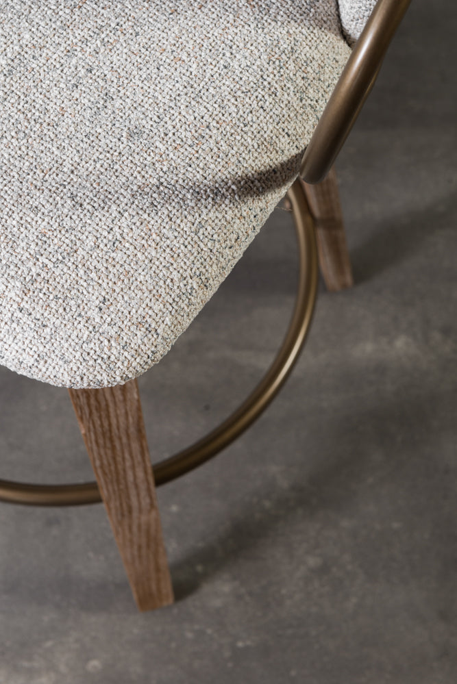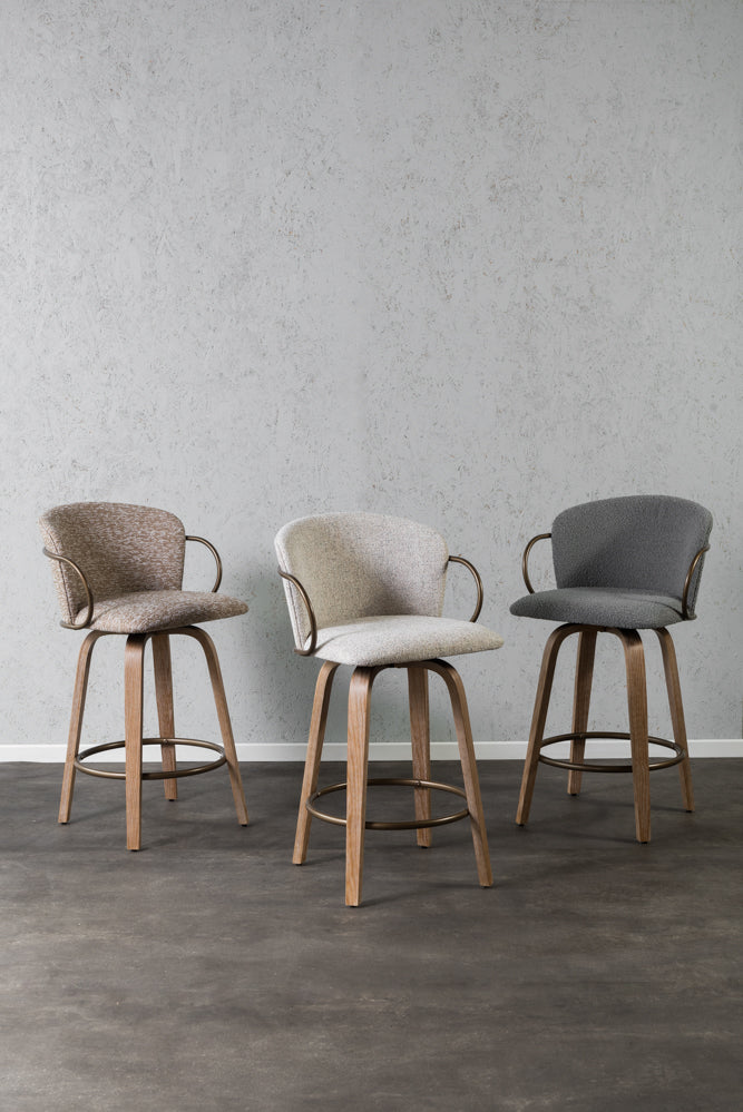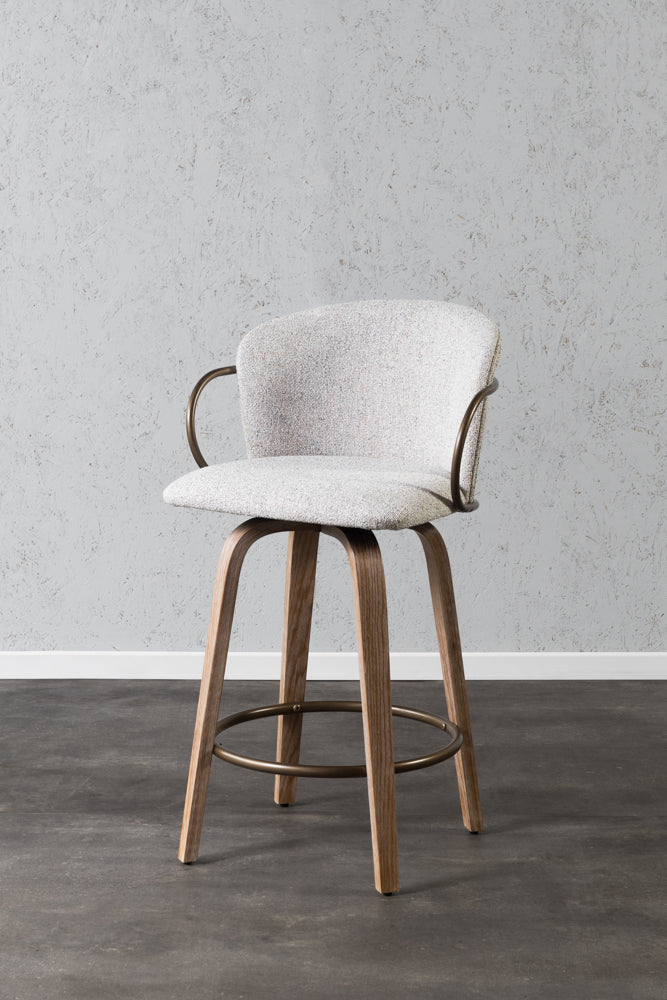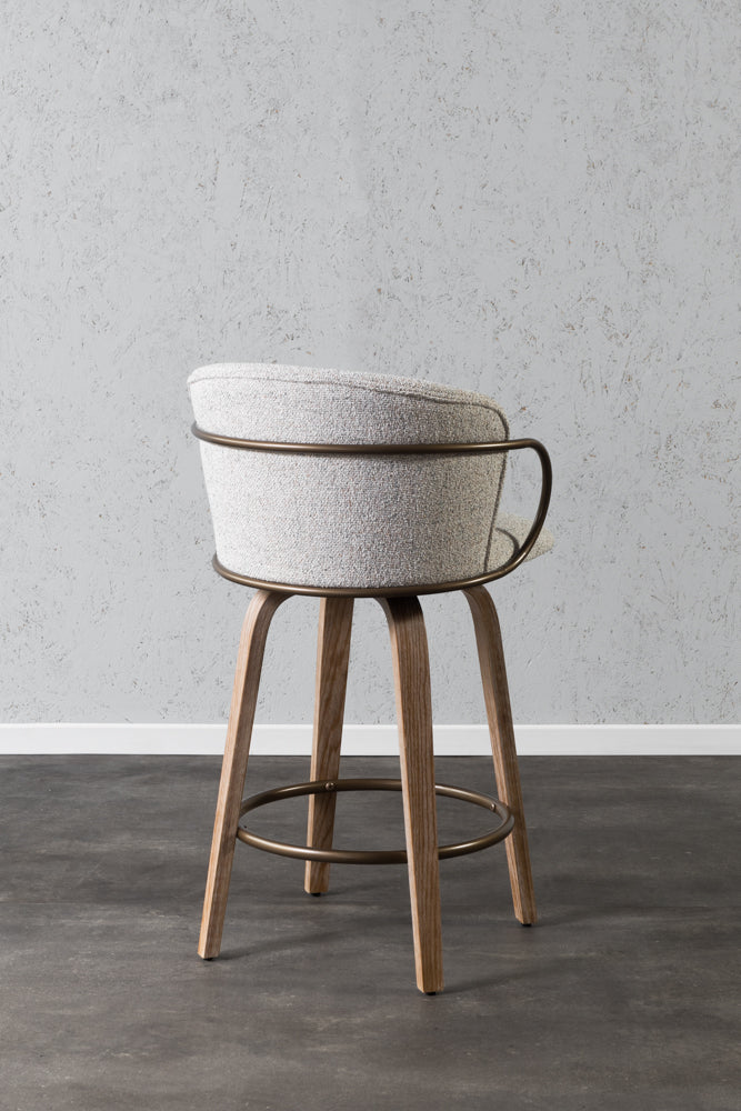 כיסא בר מרופד בד בהיר בעל רגלי עץ וטבעת ברזל