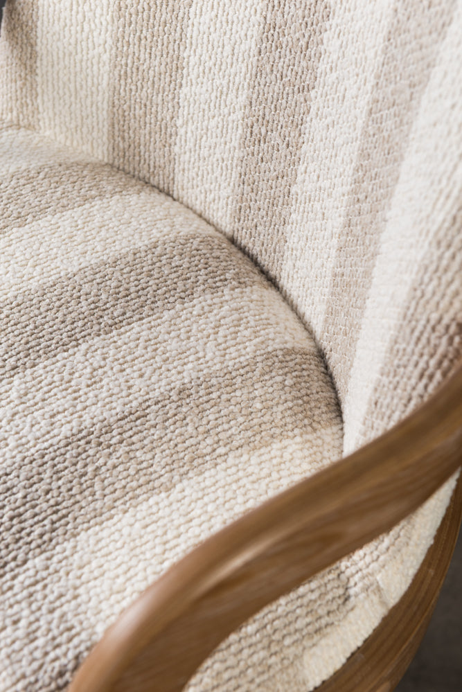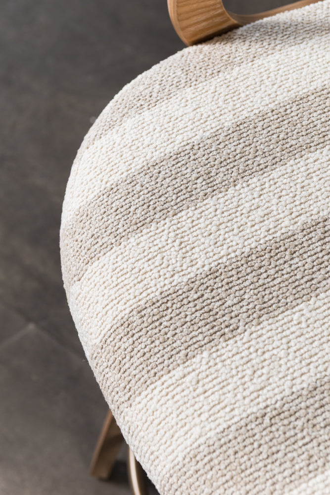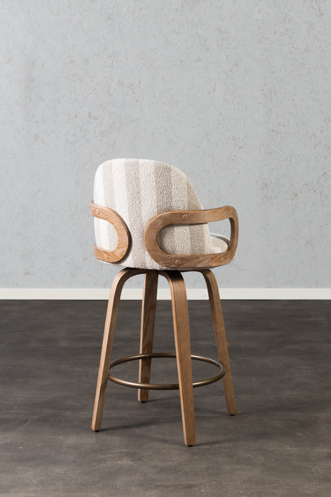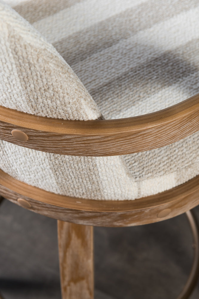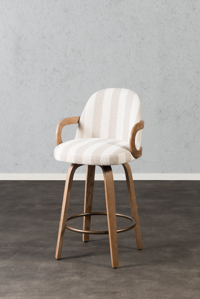 כיסא בר מרופד ידיות עץ בד פסים בהיר