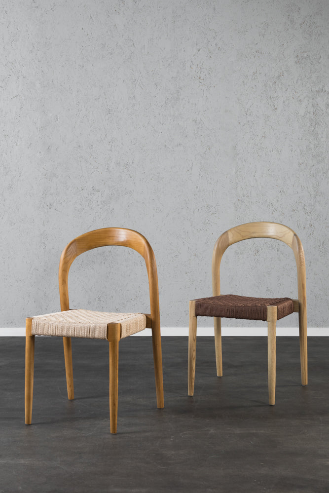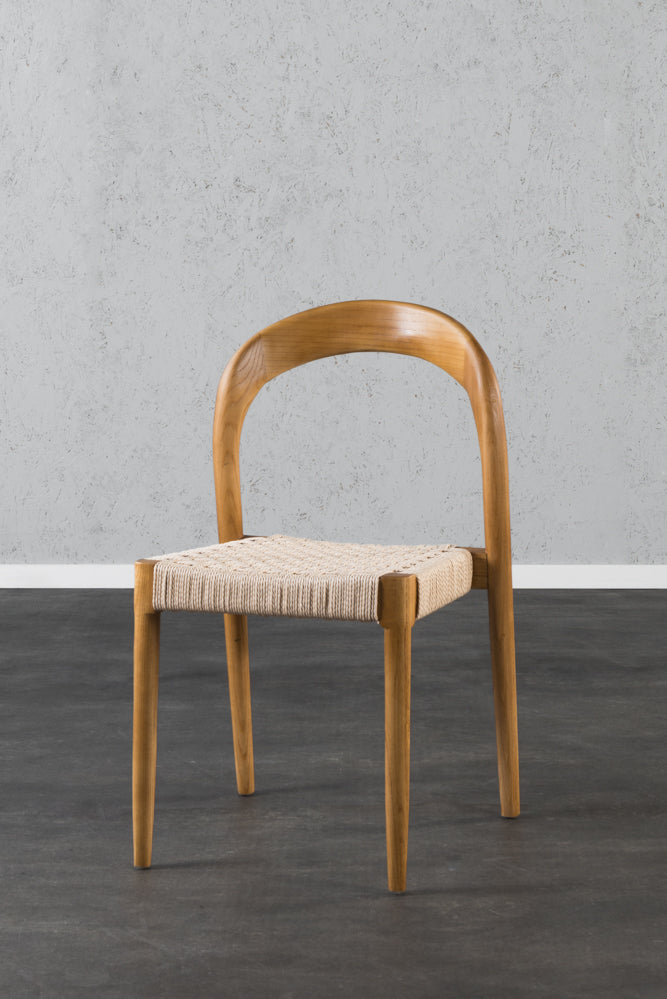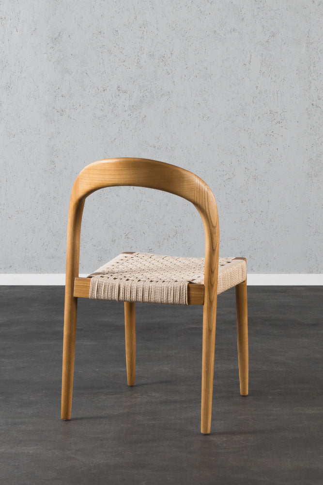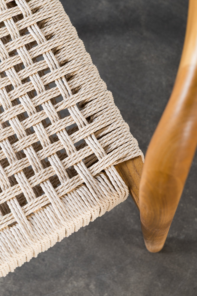 כיסא סהר עץ טבעי מושב חבל