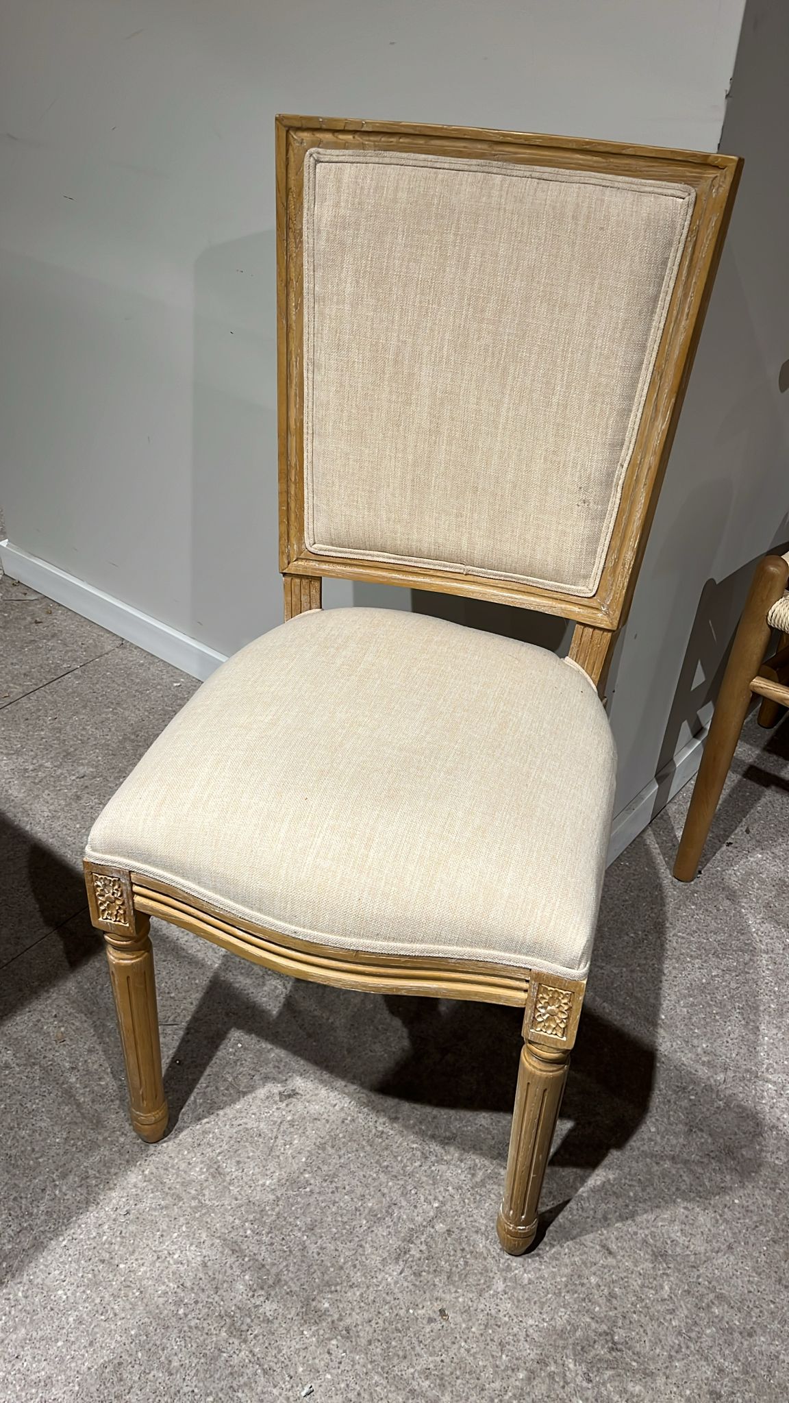 כיסא מעץ מלא משענת מרובעת - בד בהיר סוג ב'!