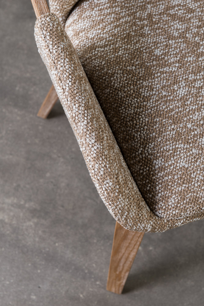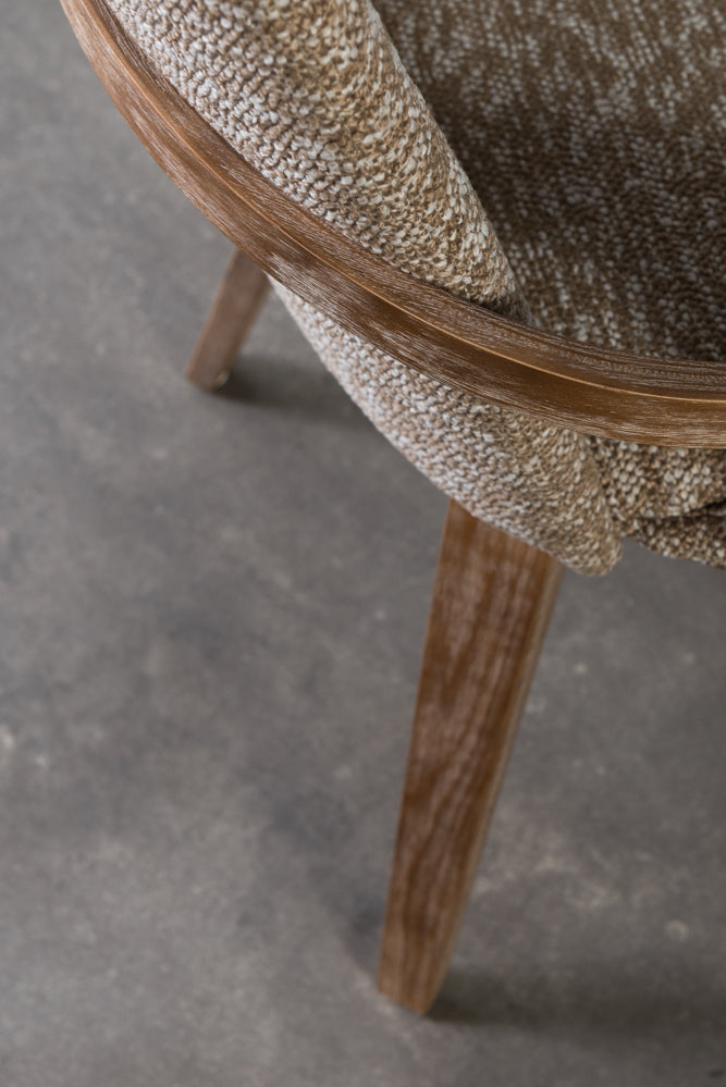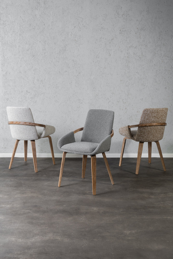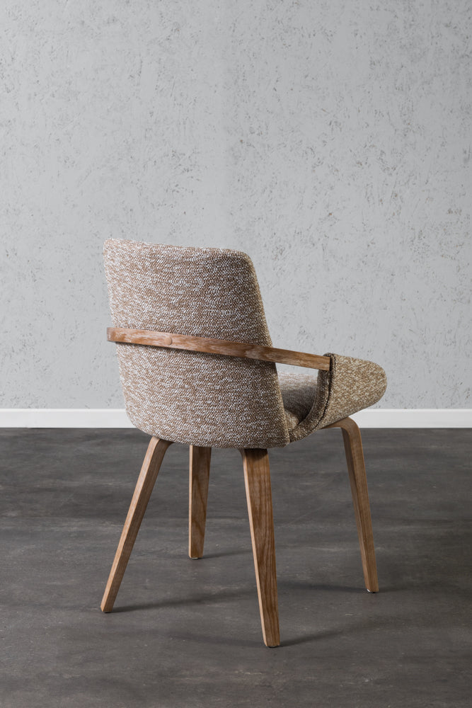 כיסא מרופד יוקרתי בעיצוב מודרני עם רגלי עץ איכותיות.
