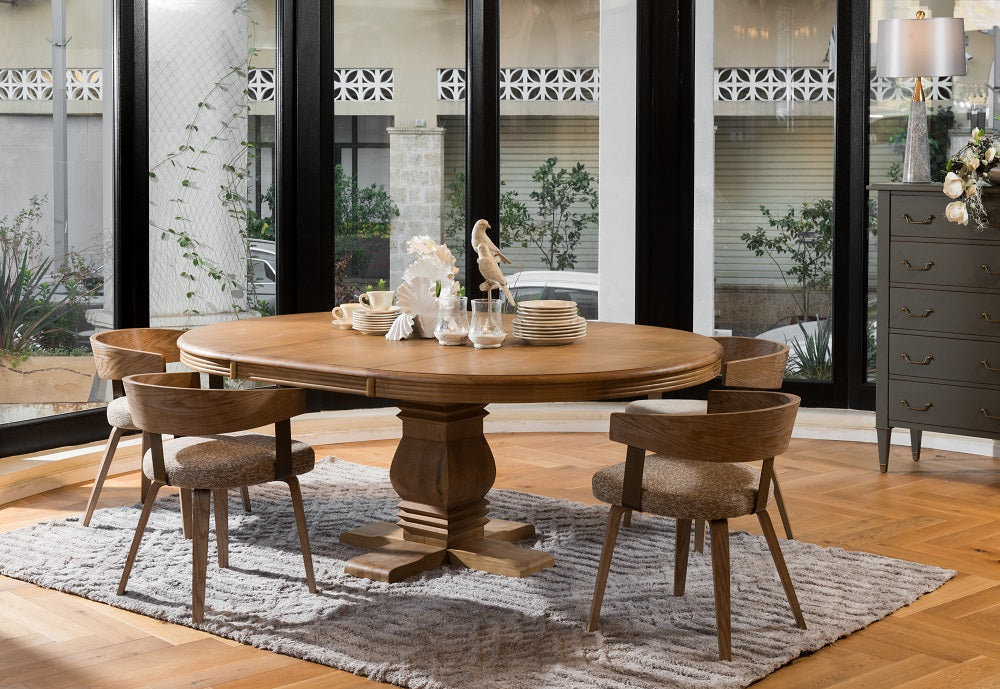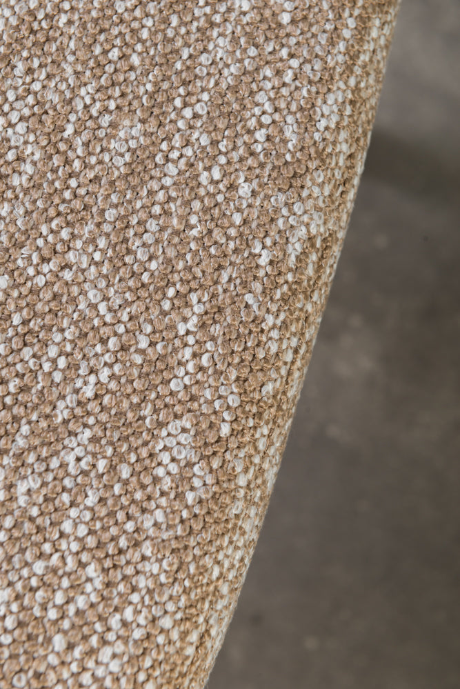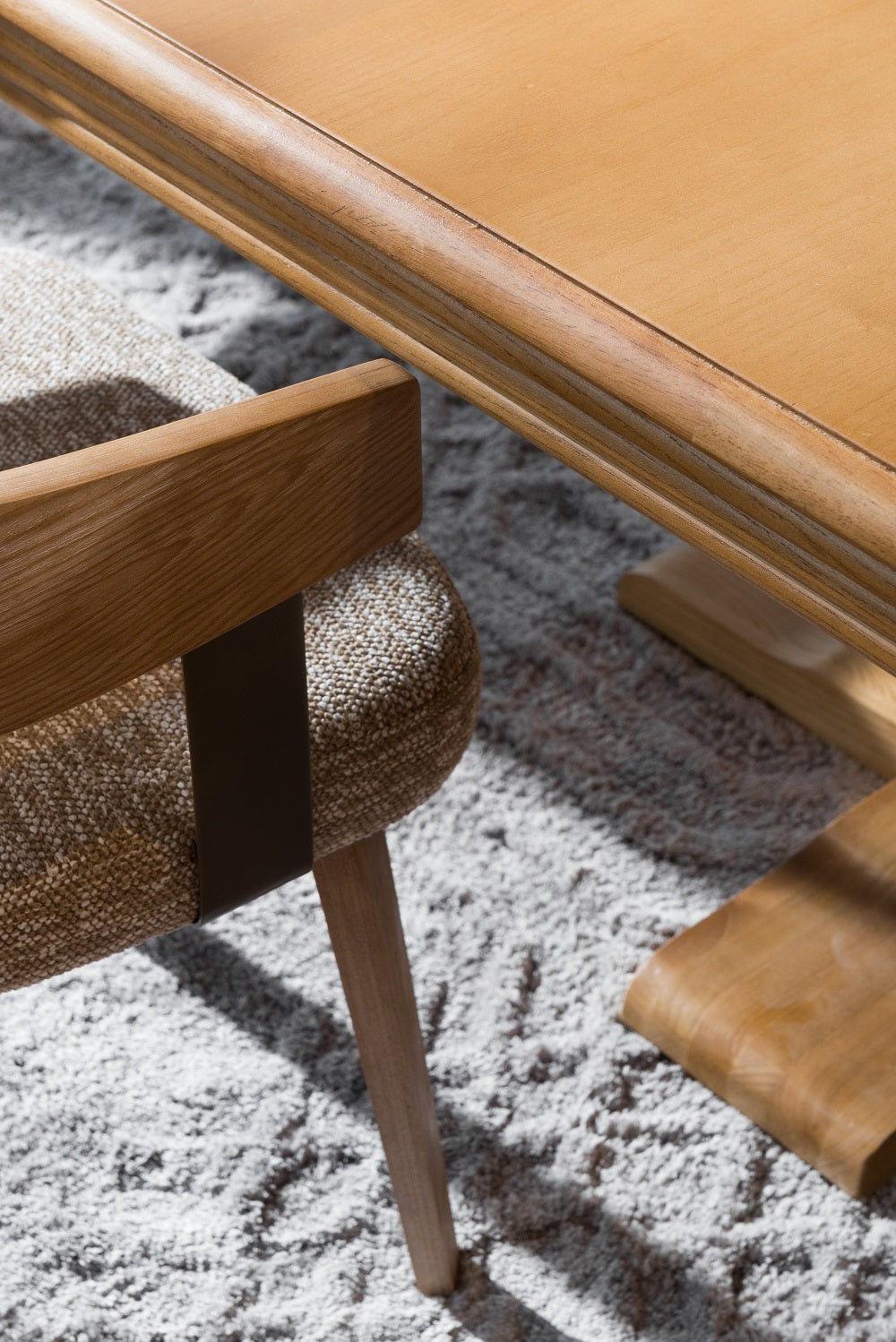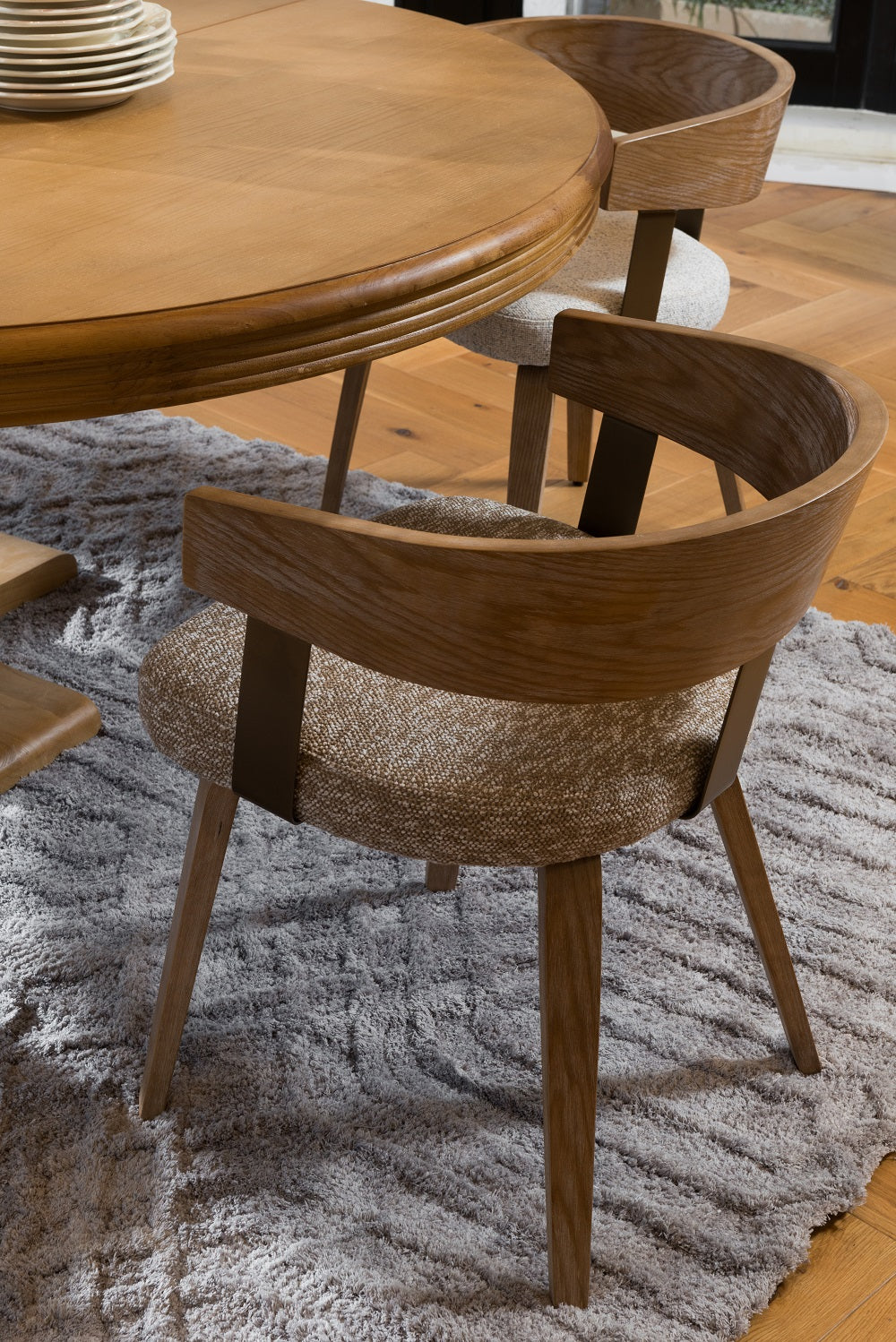 כיסא מרופד בד חום משענת עץ ידיות מוטות מתכת