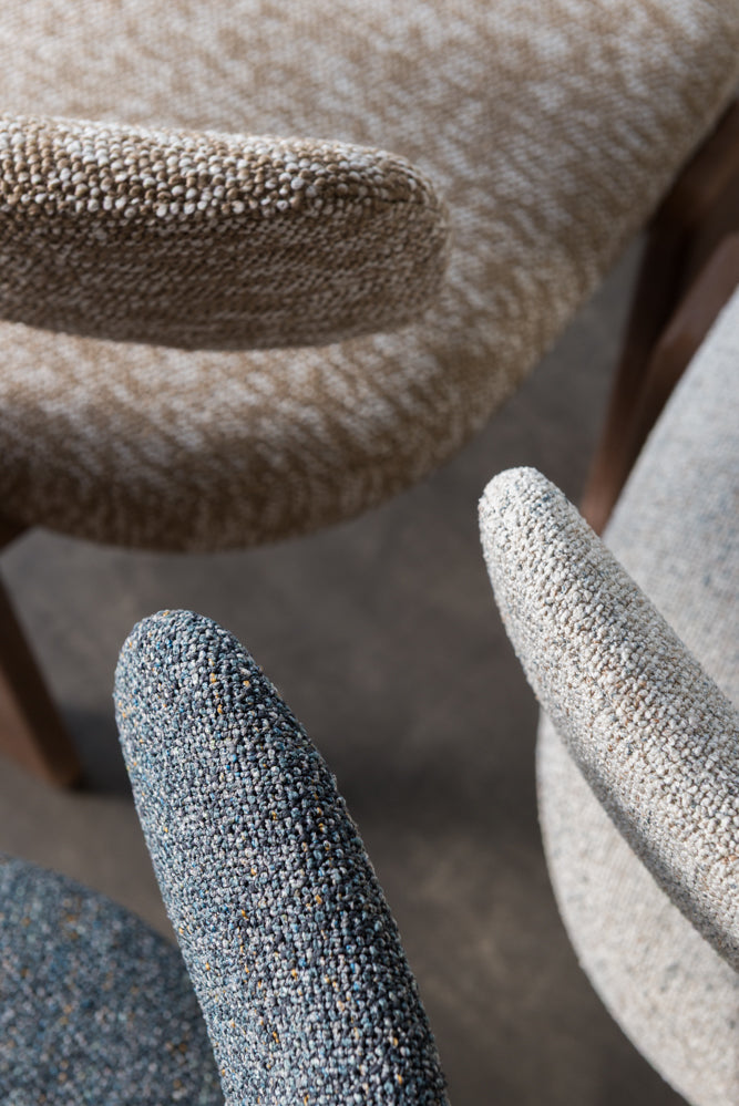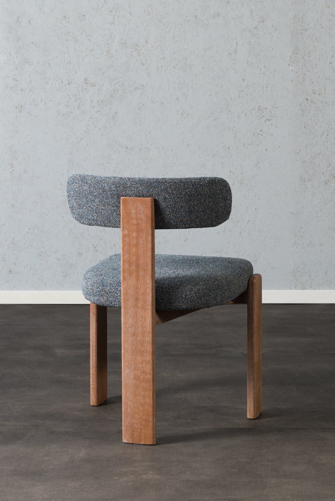 כיסא מרופד יוקרתי בעיצוב מודרני עם רגלי עץ איכותיות.