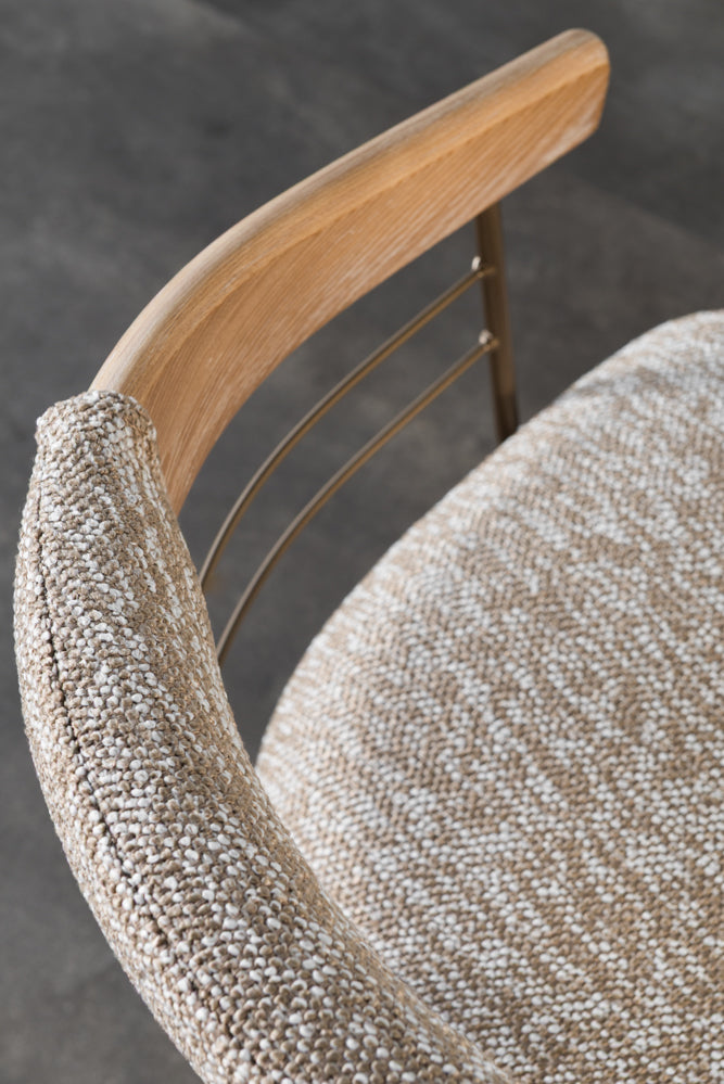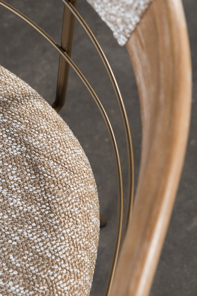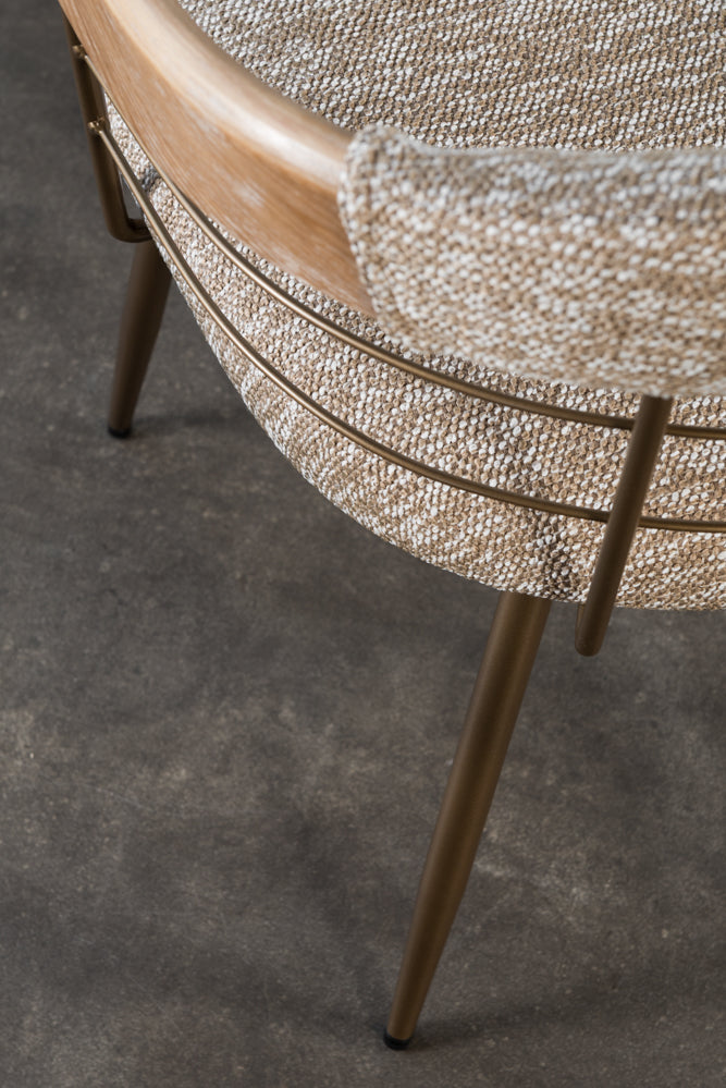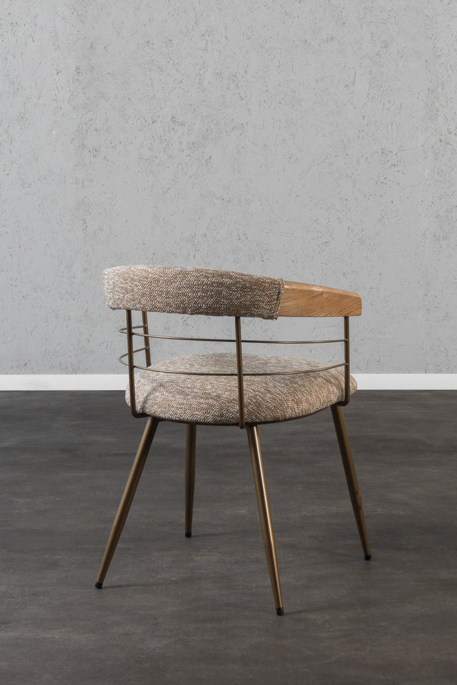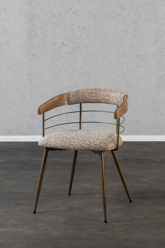 כיסא משענת מעוגלת בשילוב מתכת בד חום