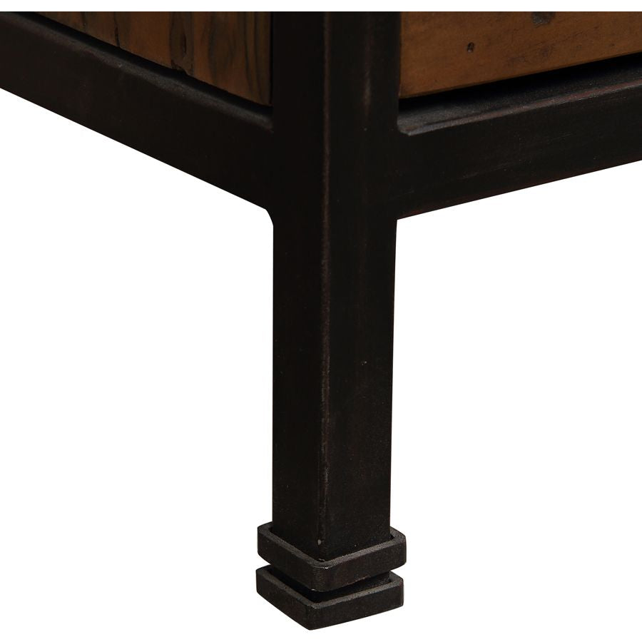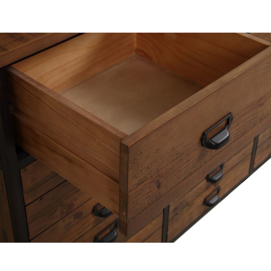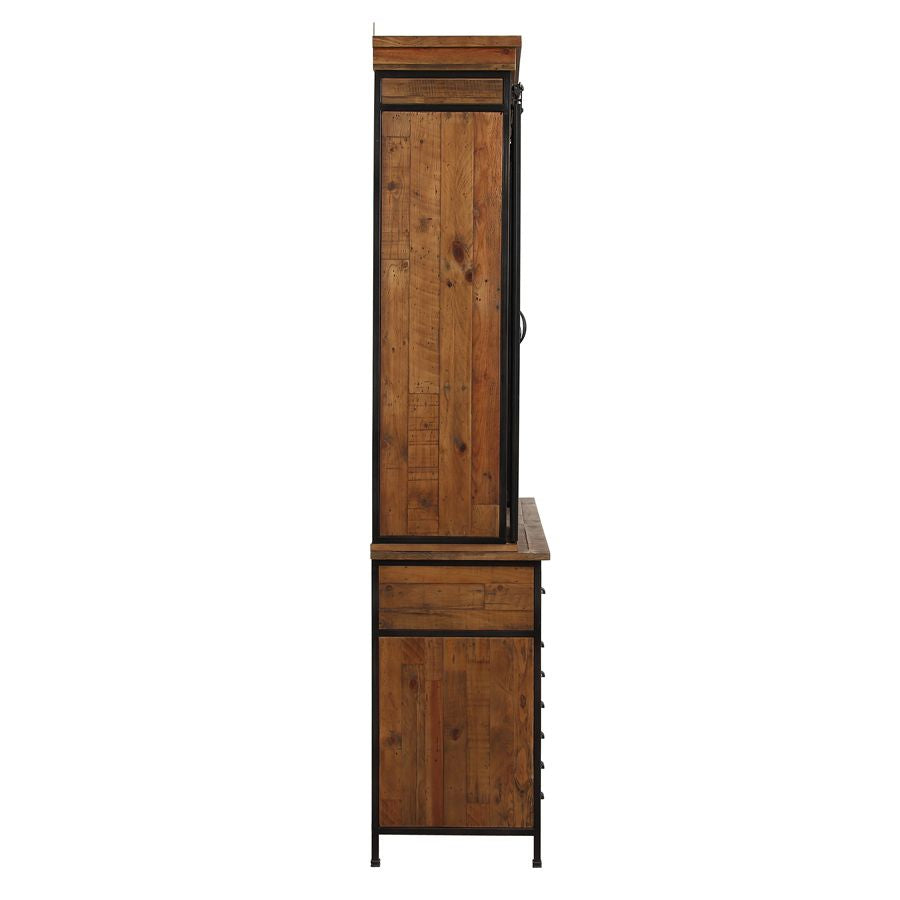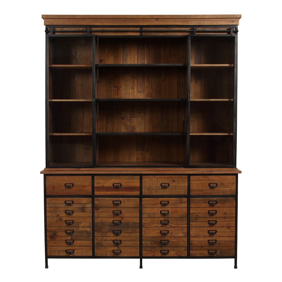 ויטרינה מעץ ממוחזר ברוח החללים הגדולים של בתי מלאכה לייצור.