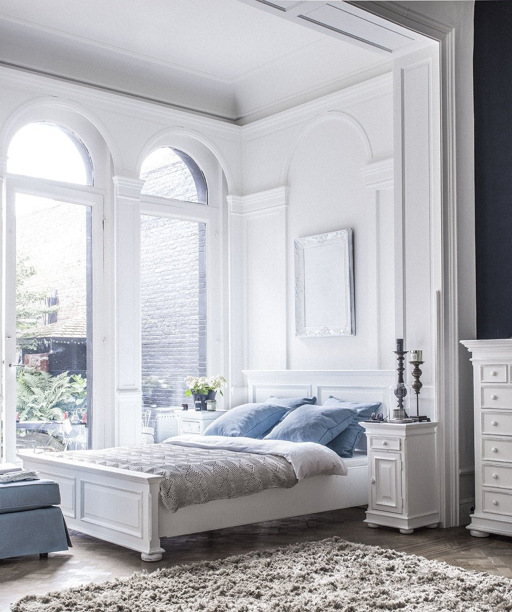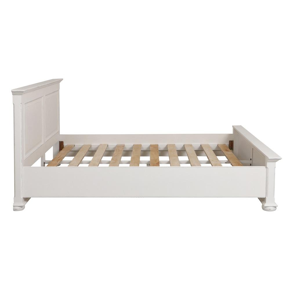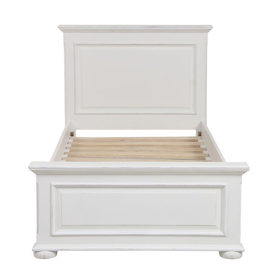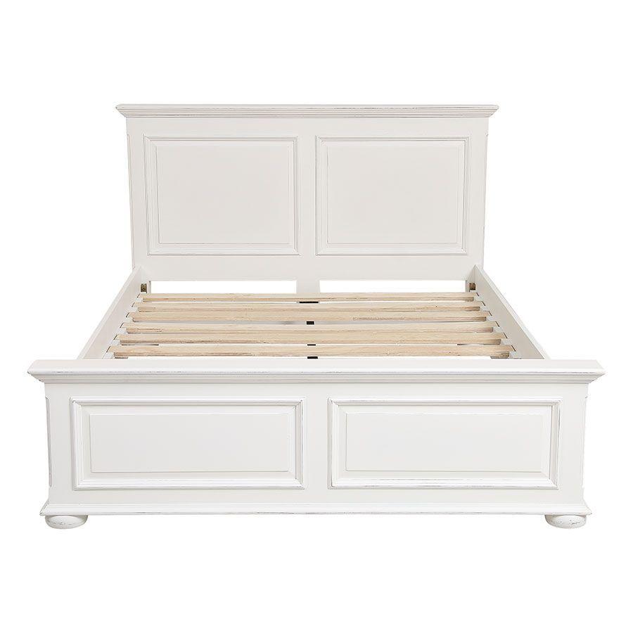 המיטה בצביעת יד בצבע לבן עם מעט שפשופים הייחודי לקולקציית הרמוני המעניקים מראה כפרי וחמים