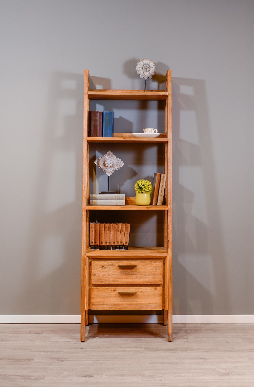 הספרייה עשויה מעץ מלא מסוג אקאציה עם מינימום נגיעה של צבע, דבר היוצר מראה כפרי וחם.