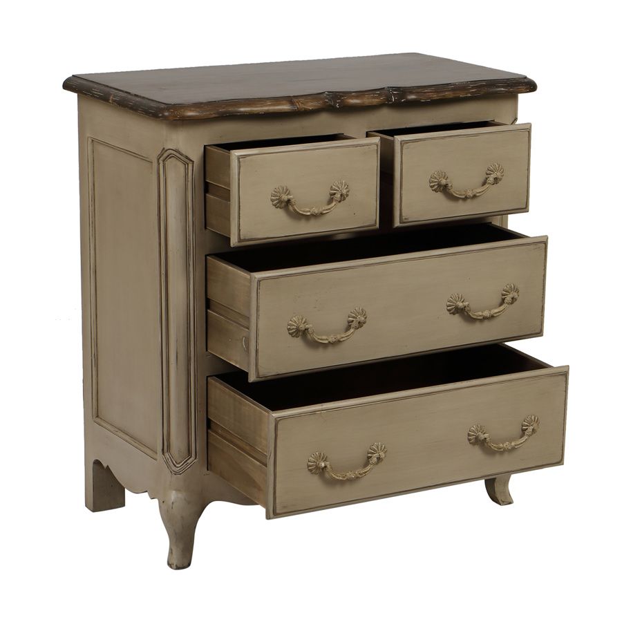 קומודה קטנה מעץ מלא בעלת 4 מגירות מקולקציית שאטו