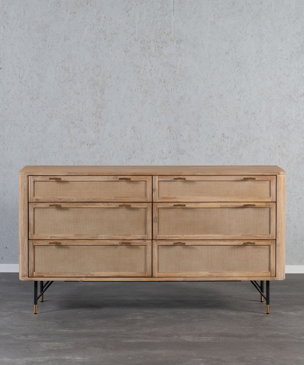 קומודה 6 מגירות מעץ מלא מקולקציית יאנג