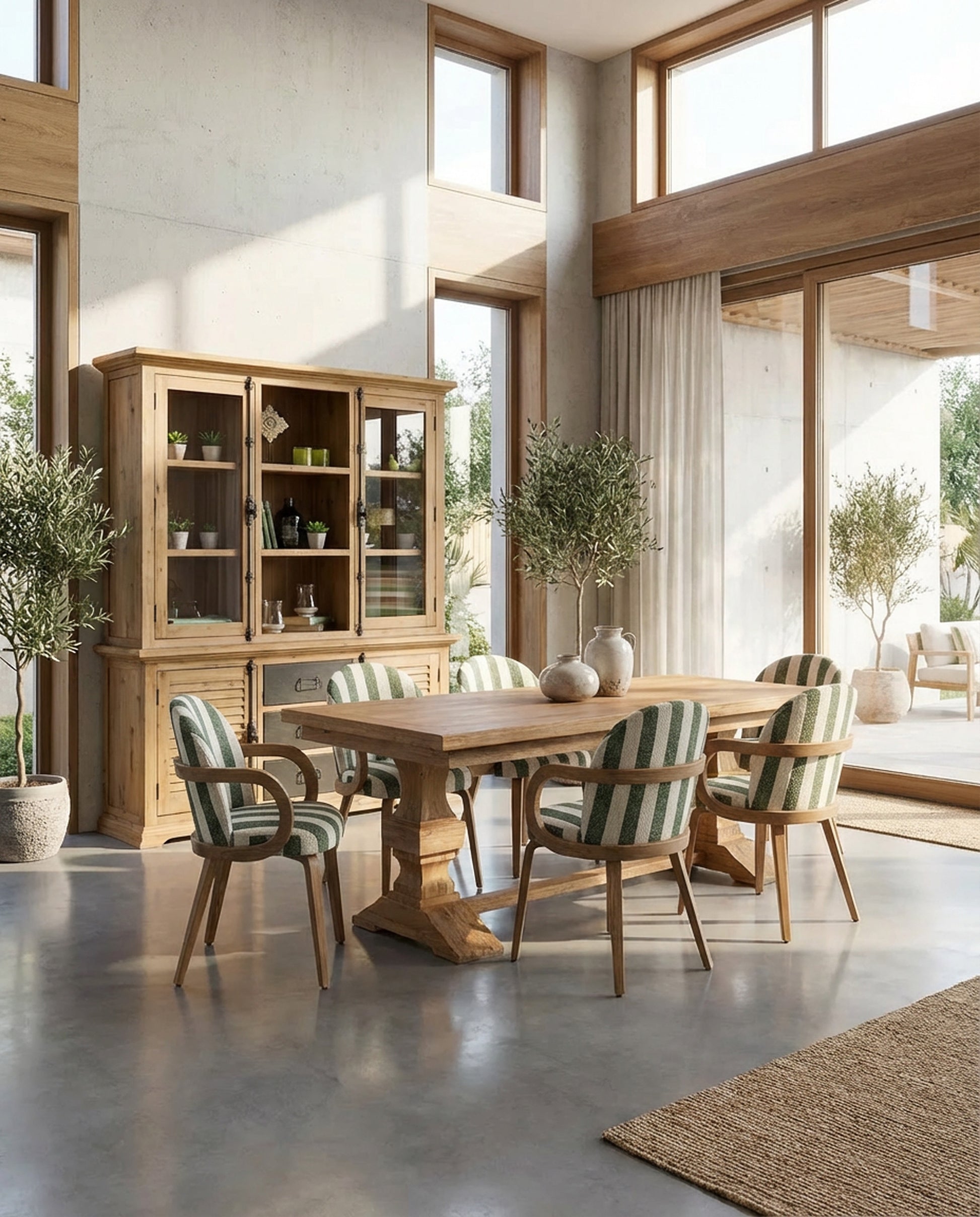 שולחן אוכל העשוי מעץ מלא מסוג אקאציה עם מינימום נגיעה של צבע, דבר היוצר מראה כפרי וחם.