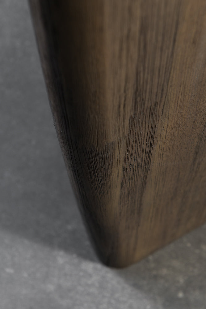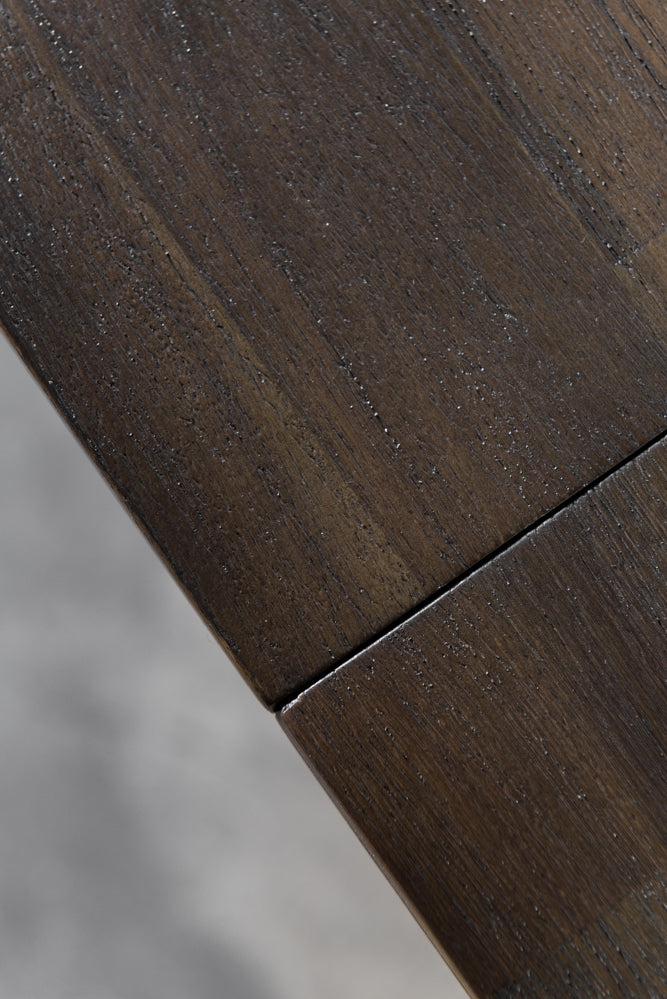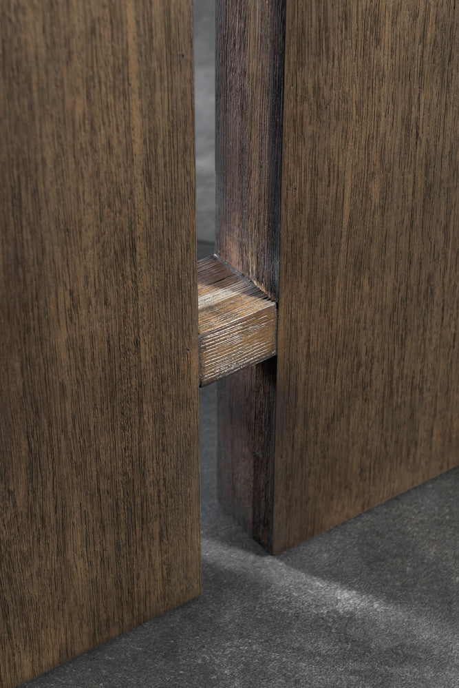 העץ בגוון חום כהה עם מרקם פסים עדין שמעניק לו טקסטורה עשירה ומראה מעוגל מיוחד. ידיות המתכת מוסיפות נגיעה מודרנית ומתוחכמת, תוך שמירה על עיצוב קלאסי ונצחי.