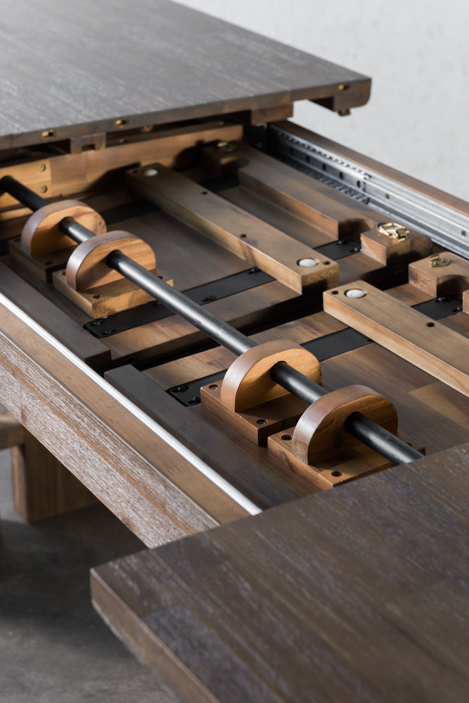 רהיט עוצמתי מעץ מלא מסוג אקציה, עם עיצוב מרשים שמשלב בין טבעיות לאלגנטיות, המעניק מראה ייחודי ואלגנטי לחלל.