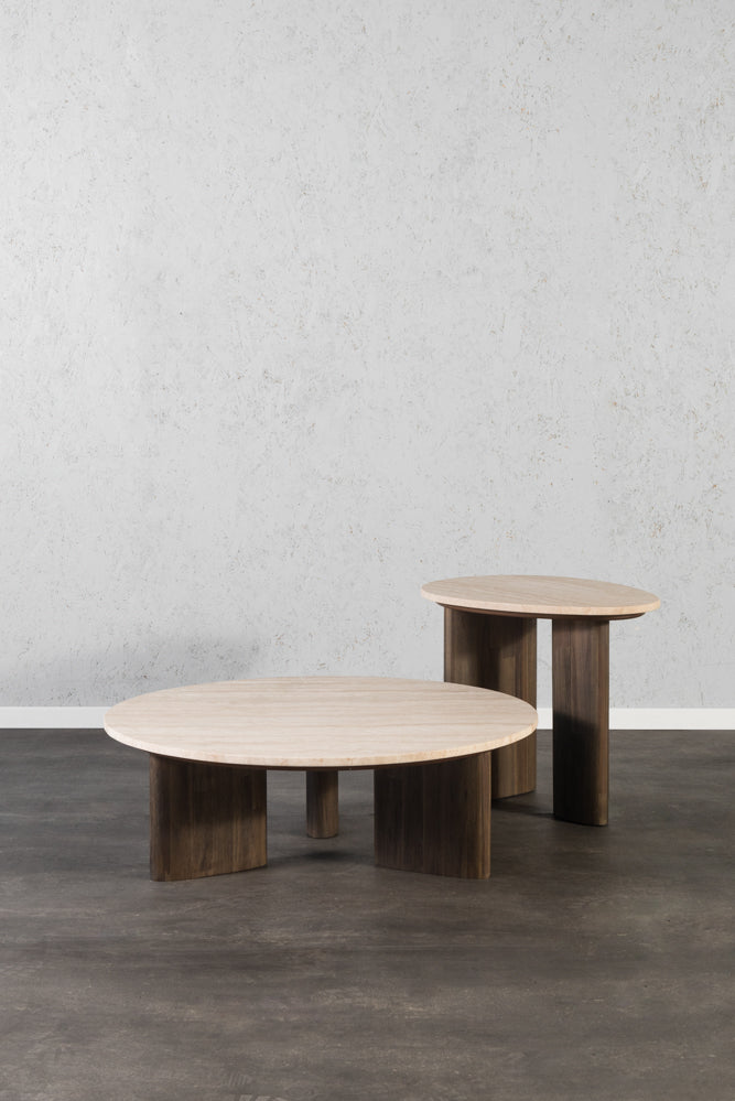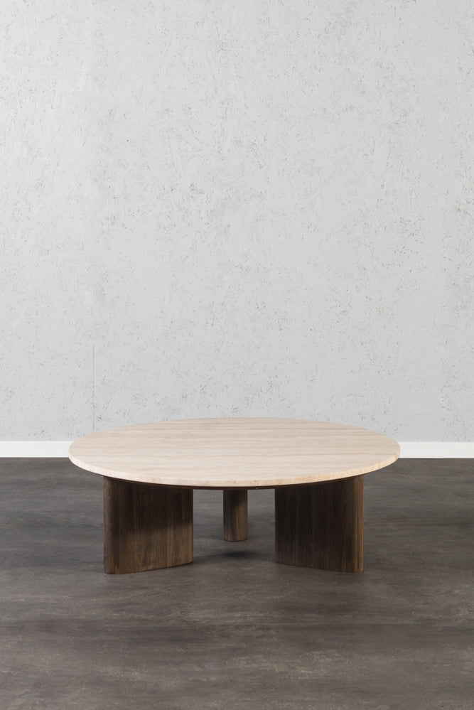 שולחן סלון מעץ ושיש מקולקציית טרוורטין