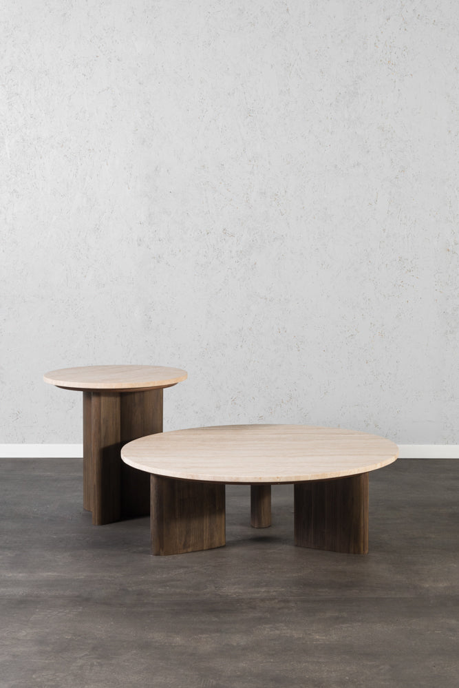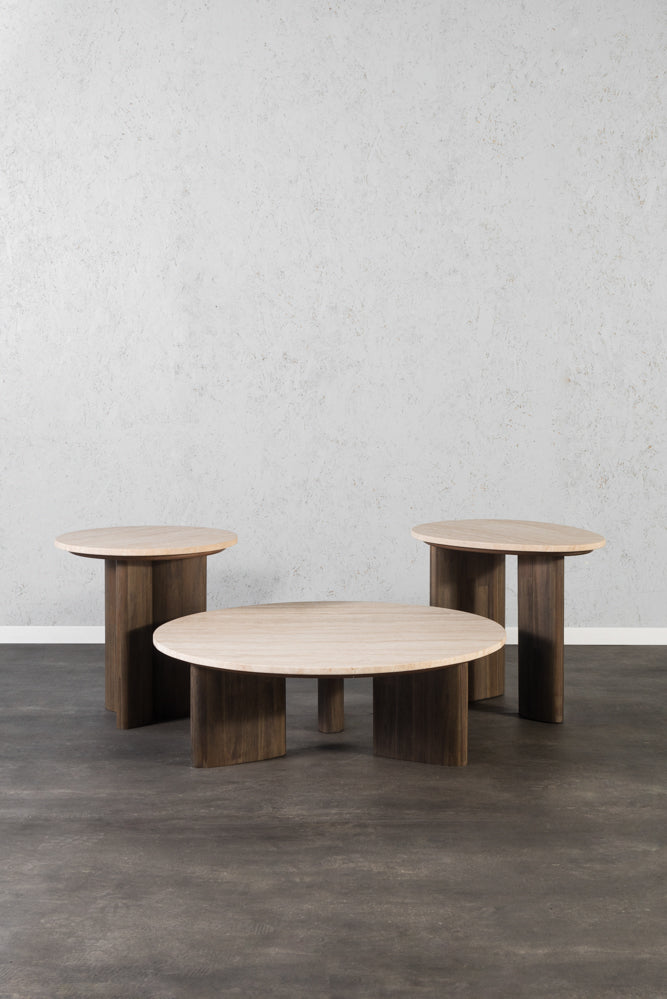 שולחן סלון מקולקציית “טרוורטין” של המותג הצרפתי WOODNET