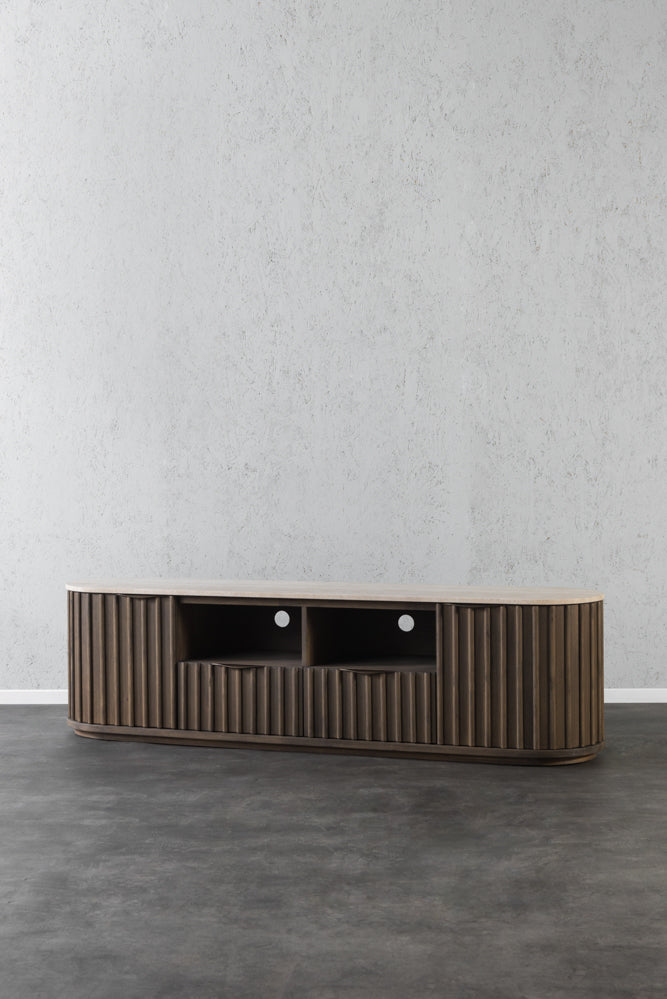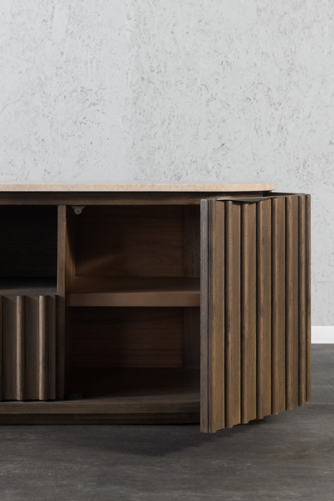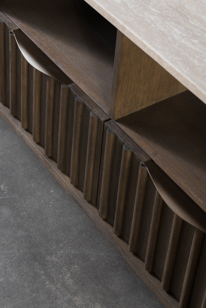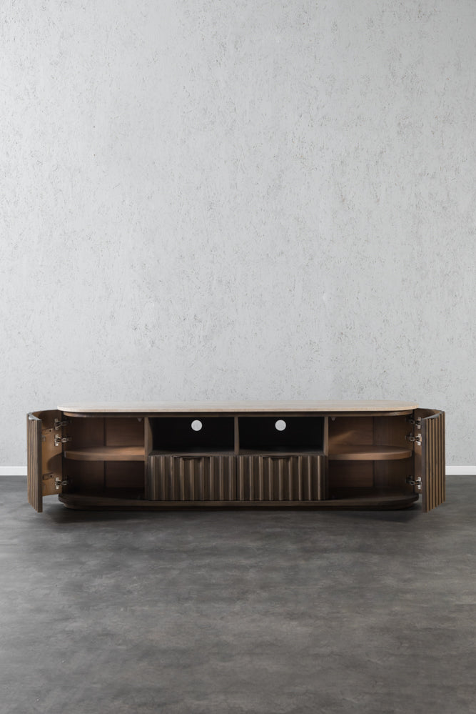 שידת טלוויזיה מעץ ושיש מקולקציית טרוורטין