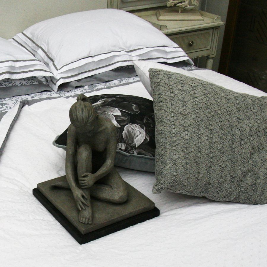 פסלון בצורת חתול בצביעת פטינה קרמית המצוירת באמייל ומאפשרת לו להתאים את עצמו לכל סגנונות העיצוב.